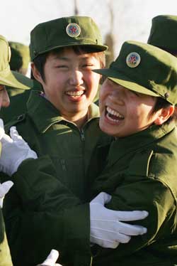 不過(guò)在接下來(lái)的場(chǎng)外表演中,郭躍表現(xiàn)出色,被評(píng)為“訓(xùn)練標(biāo)兵”,“這次軍訓(xùn)在思想意志上有了一個(gè)很大提升,剛開(kāi)始時(shí)還覺(jué)得比訓(xùn)練都累,但軍訓(xùn)結(jié)束了感覺(jué)很充實(shí)。”郭躍深有感觸地對(duì)記者說(shuō)。(實(shí)習(xí)生 王瑋譯)