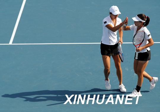 中新網(wǎng)1月22日電 據(jù)北京奧運(yùn)會(huì)官方網(wǎng)站報(bào)道,在剛剛結(jié)束的2008澳大利亞網(wǎng)球公開(kāi)賽女雙1/4決賽中,賽會(huì)7號(hào)種子中國(guó)黃金組合鄭潔/晏紫,在先失一盤(pán)的情況下上演翻盤(pán)大逆轉(zhuǎn),擊敗威廉姆斯姐妹挺進(jìn)半決賽,三盤(pán)比分為:3-6,6-4,6-2。半決賽中鄭潔/晏紫將遭遇賽會(huì)12號(hào)種子跨國(guó)組合阿扎倫卡(白俄羅斯)/皮爾(以色列)。