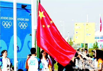 2004年8月9日,中國(guó)代表團(tuán)在雅典奧運(yùn)村舉行了莊嚴(yán)肅穆的升旗儀式。