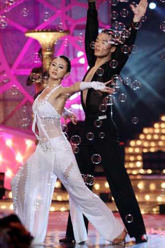 比賽一上場(chǎng),戴菲菲就仿佛回到了當(dāng)年的競(jìng)技場(chǎng),忘情地大舞帶操,一時(shí)間滿臺(tái)飄帶,看得臺(tái)下的觀眾美不勝收,在中段經(jīng)過(guò)了男舞伴倫巴的“過(guò)渡”,最后一段戴菲菲繼續(xù)演練看家本領(lǐng),最后以一個(gè)“一字開(kāi)”的標(biāo)準(zhǔn)體操動(dòng)作結(jié)束了整套舞蹈。結(jié)果幾位評(píng)審一致認(rèn)為,戴菲菲唯美的帶操完全壓過(guò)了倫巴的風(fēng)頭,正統(tǒng)國(guó)標(biāo)舞的動(dòng)作在整套舞蹈中反而是蹤影難尋,并且戴菲菲過(guò)于陶醉在自己的體操舞步中,使得男舞伴完全淪為了一片“綠葉”。好在評(píng)委們?cè)诖蚍稚隙歼算客氣,最終戴菲菲以并列第三名的身份順利晉級(jí)了復(fù)賽。