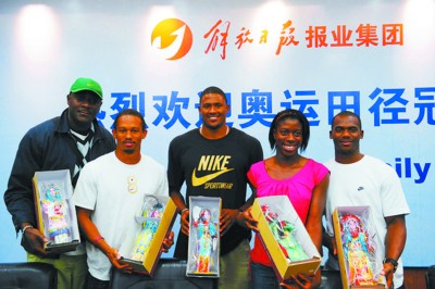 座談會上,還有北京奧運會男子4×100米冠軍成員,牙買加隊的弗雷德和卡特,北京奧運會女子400米金牌獲得者奧古魯格,雅典奧運會和北京奧運會兩屆女子三級跳冠軍姆邦哥。他們和奧利弗,都是第一批抵達上海參加黃金大獎賽的運動員,此次受到解放日報報業(yè)集團和解放日報領(lǐng)導的熱忱接待,并因收到了如穆桂英、孫悟空、趙云等京劇人偶,以及中國筷子等極具中國特色的禮物,而充滿驚喜。