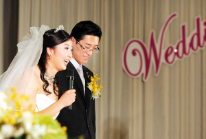 昨天上午10點(diǎn)40分,28輛吉普車送親車隊(duì)浩浩蕩蕩地開到了天津賓館國際宴會廳門前。伴隨著震耳欲聾的鞭炮、禮炮聲,新娘張娜在新郎周靖斌的牽引下走進(jìn)了會場,年近三十的張娜與相戀十多年的周靖斌終于走上紅地毯,成為體壇伉儷。結(jié)婚典禮在11點(diǎn)40分開始,鮮花、掌聲、禮樂,幸福之門下的誓約之吻,見證著張娜與周靖斌的愛情瓜熟蒂落,祝福著這一對新人白頭偕老、百年好合。
