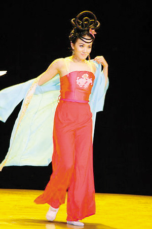 話劇《開(kāi)心麻花2009·甜咸配》日前在京舉行媒體嘗鮮會(huì)。25歲的前中國(guó)藝術(shù)體操女皇、亞運(yùn)會(huì)兩金得主鐘玲不僅擔(dān)任劇組舞蹈教師,而且在劇中扮演宋朝名妓李師師,有三大段舞蹈和藝術(shù)體操表演。