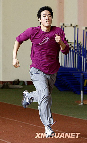 目前,劉翔還沒有進(jìn)行大強(qiáng)度的訓(xùn)練,他不也知道自己何時能夠穿上有標(biāo)志意義的釘鞋。