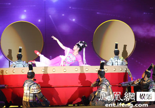 中新網(wǎng)7月2日電 7月1日,由劉曉慶主演的大型史詩(shī)實(shí)景舞臺(tái)劇《阿房宮賦》在西安進(jìn)行了首場(chǎng)演出,80分鐘的歌舞表演無(wú)論從燈光布景以及音效都給了觀眾一場(chǎng)視覺(jué)與聽(tīng)覺(jué)的饕餮盛宴。劉曉慶的傾力演出以及身著的大跨度服裝也成為當(dāng)晚最大的亮點(diǎn)。