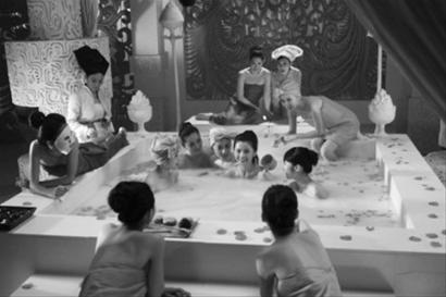 片中,有一場蔡卓妍和眾多宮女在大型浴缸洗澡的場景戲。唯美的場景,加上眾多的美女,令整個(gè)畫面看起來相當(dāng)養(yǎng)眼。記者從片方處得知,為了打造這段場景戲,投資方不惜花費(fèi)重金,耗資金百萬打造豪華皇宮,周邊的布景和擺設(shè)也是全部按照皇室宮廷級(jí)別設(shè)計(jì)。置身于這樣的場景拍洗澡戲,蔡卓妍也表示,“真的享受了皇后的待遇”。
