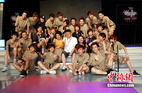 中新網(wǎng)長(zhǎng)沙7月8日電(記者 鄧霞 周凌)由韓國(guó)金牌音樂(lè)制作人金亨熙掌門的“快樂(lè)天團(tuán)”是今年“快男”的一大亮點(diǎn)。在今日長(zhǎng)沙舉行的快男12強(qiáng)媒體見(jiàn)面會(huì)現(xiàn)場(chǎng),一直在默默刻苦訓(xùn)練的“快樂(lè)天團(tuán)”18名候選者也一同亮相,并激情展示一段熱力澎湃的精彩舞蹈,讓人驚艷不已。