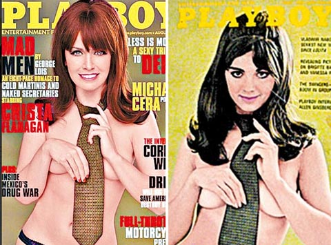 中新網(wǎng)7月19日電 當(dāng)紅美劇《廣告狂人》(Mad Men)中飾演接線(xiàn)生的女角Crista Flanagan,日前化身《花花公子》雜志的封面女郎,重現(xiàn)60年代兩個(gè)經(jīng)典的《花花公子》封面,其中一個(gè)造型更以半裸僅打領(lǐng)帶亮相,此造型正是取材自1960年Toni Lacey的11月號(hào)封面。