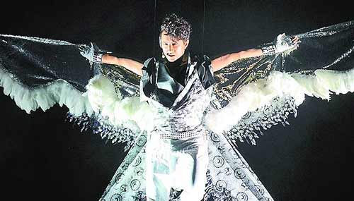 中新網(wǎng)7月19日電 韓庚脫離韓國天團Super Junior單飛,昨天在北京演唱會上化身天使,從巨大的金屬殼中“破繭而出”,象征他重新出發(fā),現(xiàn)場采用3D隱形懸浮科技幕打造出虛幻的韓庚共舞,噱頭十足。