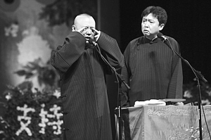 演出在當(dāng)晚7:30左右開(kāi)場(chǎng),郭德綱和于謙都身穿傳統(tǒng)長(zhǎng)衫出場(chǎng),笑容滿(mǎn)面,開(kāi)場(chǎng)白是:“感謝在座的衣食父母!比珗(chǎng)掌聲響起。在當(dāng)晚演出中,郭德綱和于謙一共說(shuō)了四段經(jīng)典作品,并且在觀眾一再要求下,返場(chǎng)了五次。郭德綱一向擅長(zhǎng)拿真實(shí)事件“砸掛”。在返場(chǎng)中,郭德綱就用“保羅”和于謙父親串聯(lián)了起來(lái),讓現(xiàn)場(chǎng)笑聲不止。除了郭德綱和于謙二人的表演,在近3小時(shí)的整場(chǎng)演出中,還有多名弟子上臺(tái)演出,但并無(wú)知名度較高的弟子出現(xiàn)。演出結(jié)束后,一群“綱絲”仍舊不愿離場(chǎng),留在門(mén)口想與郭德綱合影簽名,并且打出橫幅支持郭德綱。面對(duì)觀眾如此熱情,郭德綱也是感慨道,“我能力有限,就會(huì)說(shuō)個(gè)相聲,只要大家喜歡,我們就愿意給大家?guī)?lái)快樂(lè)!睋(jù)了解,本場(chǎng)演出所有低票價(jià)已經(jīng)在一周之前全部售出,而最高門(mén)票也是所剩無(wú)幾。在離開(kāi)場(chǎng)還有一個(gè)鐘頭的時(shí)候,黃牛黨都聚集在售票處,但并不是出售門(mén)票,而是收門(mén)票。當(dāng)記者向黃牛黨打聽(tīng)票價(jià)時(shí),得到的回答只有“沒(méi)票,你有票賣(mài)嗎?”(王少文)