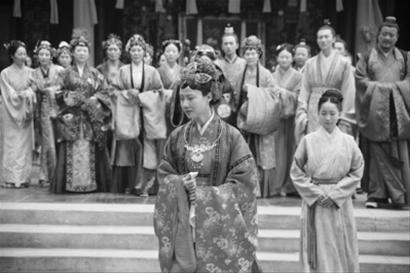 新版《紅樓夢(mèng)》中還有一個(gè)大場(chǎng)面——“可卿喪禮”,規(guī)格絲毫不次于“元妃省親”的花費(fèi),單是停靈就用了49天,“寧國(guó)府街上一條白漫漫人來(lái)人往,花簇簇官去官來(lái)”,加上數(shù)十位僧道日夜超度,薛蟠送來(lái)的、無(wú)人敢擅用的檣木棺,還有瑞珠殉葬,秦可卿的喪禮一時(shí)間有了親王級(jí)別的排場(chǎng),引得賈政等人連連搖頭。而這場(chǎng)戲拍攝得也極為仔細(xì),為符合原著基本精神,遵照當(dāng)時(shí)的禮儀規(guī)矩,賈府一應(yīng)女眷均處在一個(gè)白幃子里。