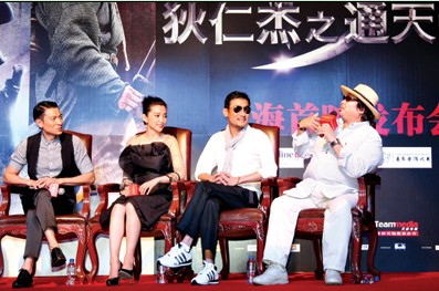 昨天,《狄仁杰之通天帝國(guó)》在滬舉行首映禮,導(dǎo)演徐克和武術(shù)指導(dǎo)洪金寶攜手劉德華、李冰冰、劉嘉玲、梁家輝、鄧超等主創(chuàng)亮相,為這部懸疑片“搖旗吶喊”!暗胰式堋眲⒌氯A接受了本報(bào)記者專訪。一面輕松地調(diào)侃片中同李冰冰的激情戲,一面又緊張地對(duì)香港電影現(xiàn)狀憂心忡忡。而他也在不遺余力地為香港電影培養(yǎng)年輕導(dǎo)演,自掏腰包成立“亞洲新星導(dǎo)”基金。談及家庭和未來,劉德華向記者透露,退休之后自己可能會(huì)追逐兒時(shí)夢(mèng)想,轉(zhuǎn)行做一個(gè)魔術(shù)師。