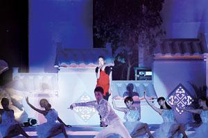 在眾人的歡呼聲中,趙薇開(kāi)腔演唱了新專(zhuān)輯中的歌曲《江城子》。舞臺(tái)上是連綿的徽派建筑布景,在白衣舞者的簇?fù)硐,舞臺(tái)上的趙薇仿佛與故鄉(xiāng)的景物融為一體。