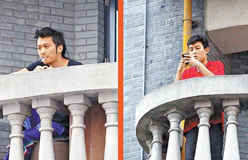 有網(wǎng)友看到陳冠希被拍的照片眼睛一亮,發(fā)現(xiàn)曾和陳冠!扒橥值堋钡闹x霆鋒,之前到上海也下榻同樣的酒店,也愛倚靠在陽臺,只不過陳冠希玩手機表情迷蒙,謝霆鋒則是抽煙解悶,眼神還有些呆滯。