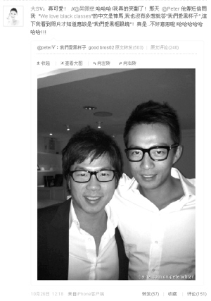 (隨即躲貓貓發(fā)了張汪小菲的照片)這是汪小菲的照片,能看到笑紋和鼻梁的曬斑,聯(lián)想吧,還有他們圍脖的互動(dòng)。