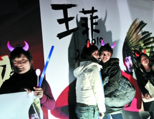 劉嘉玲曾在微博上發(fā)了一張?zhí)桨嗾,照片里排練中的王菲戴著一個(gè)“小牛角”裝飾,盡顯天后的童真可愛(ài)。而昨晚的女觀眾們有不少也在體育館門(mén)口買(mǎi)到了和王菲那個(gè)一樣的牛角裝飾戴在頭上。