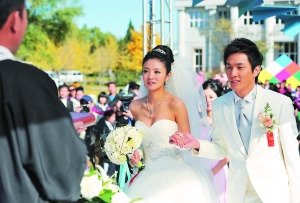 安以軒昨日在微博上說,“今早一醒來就收到神秘人送來的甜蜜巧克力!真是美好的一天~我要結(jié)婚了!”讓人誤以為繼大S之后她也要突然閃婚。其實(shí)只不過是她和韓星李承鉉在北京趕拍電影《結(jié)婚狂想曲》而已。該片講述了一對戀愛7年的年輕戀人,在準(zhǔn)備結(jié)婚的前幾天,因一場無名火燒碎兩人的夢,于是決定以舉辦一場網(wǎng)絡(luò)視頻婚禮直播洞房花燭夜為由頭,吸引各類廠商贊助從而博得貪財(cái)岳母的支持,至此,一場啼笑皆非的婚禮轟轟烈烈地展開。昨日記者趕往劇組探班,正好趕上男女主角結(jié)婚的一場大戲,安以軒和李承鉉還在現(xiàn)場大秀吻技,惹得一片驚叫連連。