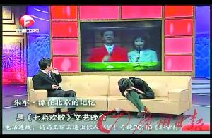 魯豫:“真好,真好!我還有個問題,北京這么冷,你冬天穿不穿秋褲啊?”朱軍一臉黑線狀:“穿啊,不穿那要冷死喲!濒斣ン@訝得眼珠子要掉出來了:“不可能!不可能。〔豢赡埽。!我們從事傳播行業(yè)的工作者怎么可能穿秋褲呢?你肯定在忽悠我,我不信……(面向觀眾)你們信嗎?”朱軍答:“我真的穿啊!濒斣サ溃骸澳憧隙ú淮! 朱軍:“我真的穿!濒斣猿郑骸澳憧隙]穿!敝燔姛o奈說:“我今天就穿了啊!濒斣フf:“騙人,我不信,除非你把褲子脫了給我看看!敝燔娝鞜o語。