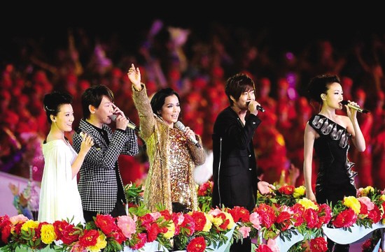 此次亮相開(kāi)幕式,韋唯和譚晶、陶喆、金賢重、容祖兒等五人共同演唱《日出東方》。已是前輩的韋唯梳著時(shí)髦的發(fā)型,毫不顯老。