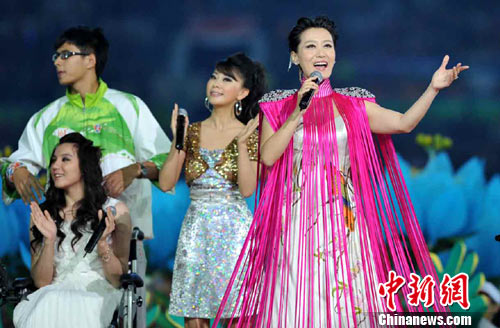 中新網(wǎng)12月13日電 與在海心沙舉辦的亞運會開幕式上強烈的視覺沖力和明星云集不同,12日晚在廣東奧林匹克體育中心上演的亞殘運會開幕式則充滿了溫暖和關(guān)愛。文藝表演環(huán)節(jié)中,除了400多位殘疾人媽媽團和300多個殘疾演員用手語帶領(lǐng)6萬名觀眾進行愛的表達震撼全場之外,一位特殊的明星創(chuàng)紀錄的三次出場給觀眾帶來了不同的驚喜和感動,她就是著名歌唱家、廣州亞運會宣傳大使——譚晶。