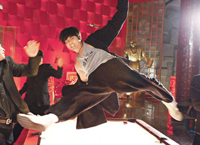 中新網(wǎng)1月16日電 周杰倫在新片《大灌籃》中,單獨(dú)與80名壯漢惡拚連場(chǎng),一幕凌空飛腿后落地?cái)[出金雞獨(dú)立姿勢(shì)的場(chǎng)面,連動(dòng)作導(dǎo)演程小東也不禁大贊。