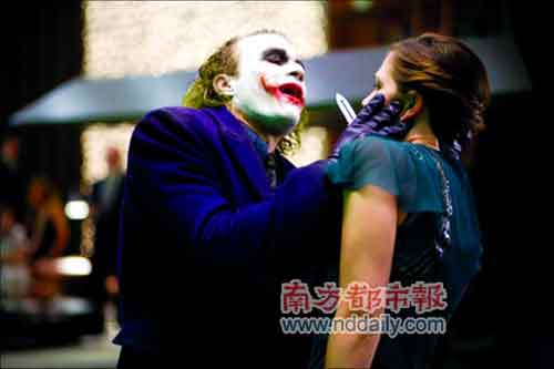 由于希斯·萊杰不久前英年早逝,由他擔(dān)任反派的《蝙蝠俠:黑暗騎士》忽然平添了幾分憂傷,他一臉灰白抹上大紅色笑臉的小丑裝扮讓人不禁心酸。
