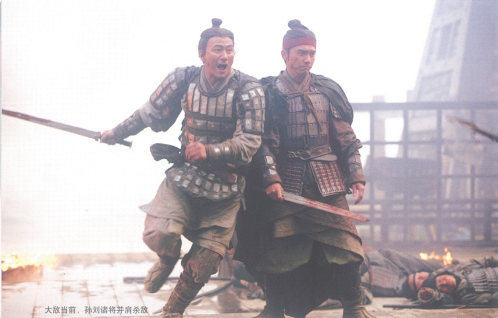 從記者的角度來看,戰(zhàn)爭場面的確比較血腥,殺戮鏡頭很多,而吳宇森風(fēng)格的慢鏡頭和色彩運(yùn)用則多少以“美感”中和了“暴力”。盡管是第一次拍古裝大片,但吳宇森充分消化了中國古代戰(zhàn)爭中的智慧:有點(diǎn)像當(dāng)代團(tuán)體操的八卦陣、破馬陣的狼牙棒、趙云的“空手套白狼”、張飛的獅吼、關(guān)羽的一夫當(dāng)關(guān),再加上搖著羽扇的諸葛亮和表情鎮(zhèn)定的周瑜穿插其中,極富節(jié)奏的鏡頭調(diào)度讓戰(zhàn)爭場面血肉豐滿。