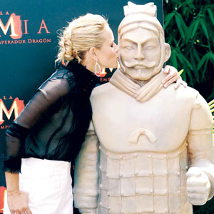 發(fā)表評論  由李連杰、楊紫瓊等眾多華人影星參演的《木乃伊3:龍帝之墓》將于下周四(31日)在我國香港地區(qū)、新加坡和韓國上映,但內(nèi)地觀眾則要到8月底才能有望一睹“龍帝”模樣。不過這并不影響該片在全球刮起一股“中國風(fēng)”。本周一,《木乃伊3》主演布蘭登·弗萊澤、瑪麗亞·貝羅與兵馬俑出現(xiàn)在西班牙馬德里時(shí),再度燃起人們對兵馬俑的好奇。