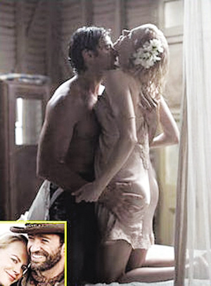 妮可·基德曼與休·杰克曼于新片《澳大利亞》中的床上纏綿照曝光,只見赤裸上身的休與身穿絲質(zhì)貼身睡衣的妮可跪在床上相擁,妮可陶醉地閉上眼、仰著頭,讓休親吻她的頸部,場面非;鹄!休受訪時(shí)自言很喜歡《澳大利亞》導(dǎo)演巴茲·魯赫曼的作品,因?yàn)樗鼈兊闹黝}都是愛情打破世俗枷鎖,而他表示與妮可合作是超乎想象的美好體驗(yàn)。 小 魚