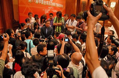 第17屆金雞百花電影節(jié)的新聞發(fā)布會(huì)昨日上午舉行。通常而言,這場(chǎng)發(fā)布會(huì)是電影節(jié)組委會(huì)通報(bào)電影節(jié)工作進(jìn)度,并接受媒體對(duì)于電影節(jié)以及評(píng)獎(jiǎng)工作提出意見和建議的“常規(guī)動(dòng)作”。但因?yàn)椤稘M城盡帶黃金甲》單方面在46年百花獎(jiǎng)歷史上首開“退賽”先河,發(fā)布會(huì)忽而成為昨日最重要的新聞事件。而就在中國(guó)電影家協(xié)會(huì)常務(wù)副主席康健民“被迫宣告”《黃金甲》退賽之前,他正在闡述由于存在黑箱操作、惡意投票等問(wèn)題,近兩屆的大眾電影百花獎(jiǎng)才開始“改革”,增設(shè)101位現(xiàn)場(chǎng)評(píng)委。如今,《黃金甲》又一次“鉆”了百花評(píng)選規(guī)則的漏洞,康健民承諾說(shuō):“我們考慮再修改評(píng)選規(guī)則,研究‘退出機(jī)制’。”