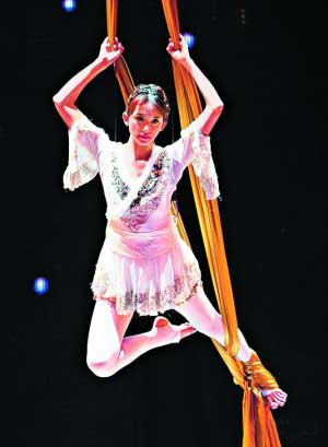 前晚她身負(fù)金馬獎開場重任,一出場唯美的火紅古裝令人驚艷。這是她首度在公開場合的獨唱表演,但娃娃音唱腔其實是事前配唱的成品,林志玲坦言壓力很大,加上是首次以電影人身分出席盛會,“希望大家仍會給我加油打氣!薄缎膽(zhàn)》唱畢,她褪去紅衣,幻化成白天鵝舞出飛天秀,高難度技藝讓全場觀眾贊嘆,據(jù)說她為此苦練8天、每天8小時,加強肌肉耐力、克服恐懼。主辦單位特別為曾墜馬的她保了5000萬臺幣意外險,當(dāng)晚她共“飛”了3次,前兩次沒鋼絲輔助,但這 “特技”與蔡依林的《特務(wù)J》“空中無重力彩帶舞”有些雷同。最后她再次搖身一變女戰(zhàn)士,拿著長槍和舞者對打,不過這段表演,略嫌花拳繡腿。