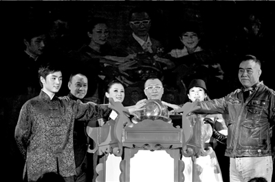 陳凱歌率領(lǐng)章子怡等主創(chuàng)向影迷鞠躬致謝。主創(chuàng)們一起點燃了寫有“梅蘭芳華”字樣的宮燈,寓意影片票房更加紅火。