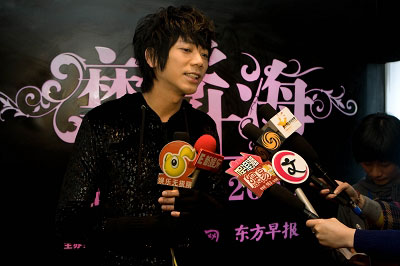 寧浩的新片《瘋狂的賽車》將在本月20日全國公映,昨日來滬宣傳的他,也帶著演員九孔來到摩登上海的頒獎禮上。擔(dān)任頒獎嘉賓的寧浩顯得有些靦腆,所有的風(fēng)頭都被首次來滬的臺灣著名諧星九孔“搶”去了。一直念叨著“1月20日”這個《瘋狂的賽車》公映的時間,九孔拼命給自己的新片打廣告。而為了讓臺下觀眾對電影和自己更有“印象”,九孔還現(xiàn)場表演了一段拿手的模仿秀。一曲任賢齊的《心太軟》讓臺下觀眾一時以為自己是在觀看《全民大悶鍋》。