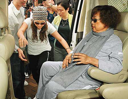 重視外表的肥肥,這次外出刻意打扮年輕,戴上墨鏡、假發(fā),并穿著運(yùn)動服、運(yùn)動鞋、披上圍巾,不過墨鏡下,仍可見到她面容略顯憔悴,手背也因打針而烏青,光10個階梯她便走得十分費(fèi)力,鄭欣宜必須半推半扶,她才能順利走進(jìn)發(fā)廊。經(jīng)過1個多小時的“整頓”,肥肥步出發(fā)廊時煥然一新,不但原本扁塌的假發(fā)變挺,黃臉也因上了妝而變得粉嫩,當(dāng)她上車時,親友又一字排開高喊:“讓開,別擋路!”接著一行人浩浩蕩蕩返回肥肥劍橋花園寓所。