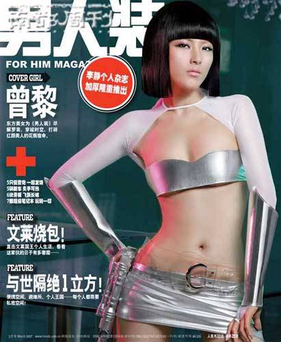 看著這個(gè)美人從古典端莊飛躍到裸露性感,從此,我們都知道應(yīng)該脫了,就是不知道怎么才能既脫成那樣,又保護(hù)了自己。把自己扒光了給人看也是需要勇氣的,盡管曾黎說(shuō)是《男人裝》PS掉了她穿的內(nèi)褲,可不能否認(rèn),這一脫將她的端莊形象一掃而空。感謝《男人裝》,在電影分級(jí)制度看不到曙光的前提下,率先用雜志演繹出了性感靜像電影,唯一的遺憾是,如果雜志做成3D立體效果就好了。