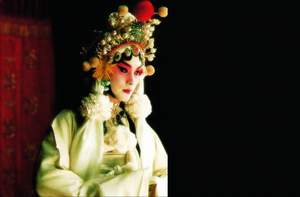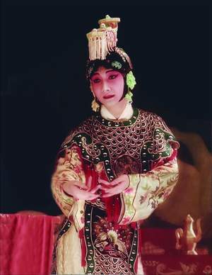 照片中的“Leon版”梅蘭芳,虞姬做手與眼神看出他下過(guò)不少工夫,但因先天條件不足,Leon的臉型本屬長(zhǎng)方形,縱使靠?jī)蛇叴筚N片“打救”,面相也難營(yíng)造出具女性美的鵝蛋臉、下巴尖尖的效果,加上并非眼睛圓大的Leon,眼神欠了一點(diǎn)嬌美媚態(tài),跟擁有一張鵝蛋臉、圓大眼睛及性感的豐厚嘴唇,天生一副美人胚子的梅蘭芳相比,就算Leon竭盡所能演繹,也礙于先天輪廓及形態(tài),跟梅蘭芳韻味有一大段距離。反之,在片中飾演梅蘭芳青年版的余少群,外形條件加上他有十多年漢劇文武小生的功底,神態(tài)與造型吸引得多。