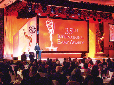 2007年11月19日,位于美國紐約曼哈頓第6大道、54街的希爾頓飯店,突然間成為眾多電視攝像機(jī)聚焦的地方。當(dāng)?shù)貢r(shí)間晚7時(shí),國際電視界的最高獎(jiǎng)項(xiàng)之一——第35屆國際艾美獎(jiǎng)?lì)C獎(jiǎng)典禮在這里隆重舉行。來自世界各地的電視明星、導(dǎo)演、制作人、發(fā)行商和政界名流、專家學(xué)者等共1000余人,以及數(shù)十家著名電視機(jī)構(gòu)歡聚一堂。