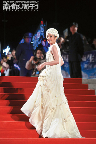 上榜理由:通常情況下,趙薇的穿著表現(xiàn)要比她的星路平常得多,稱她為時裝殺手一點不為過。在這次的風(fēng)尚典禮上,她表現(xiàn)出了她的時裝判斷力,像低成本制作的電影記錄中的80年代鄉(xiāng)村歌舞團的巨星!先不說曳地長裙對于這個派對是否過于隆重,再說這些裙上的圖案曖昧不清,頭上的帽子仿佛是不負責(zé)任的爛電視劇服裝管理給她栽的贓。