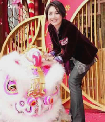 新春團拜現(xiàn)場,楊千嬅首先坐上插著“楊”字大旗的八人金轎進場,然后上臺接受財神送贈的多份禮物,包括金元寶、利是封折成的“孔雀開屏”、桃花風車及哈哈笑公仔,之后她更聯(lián)同財神到臺下轉動大風車,為香港轉個好運,并向現(xiàn)場巿民大派利是,場面熱鬧。