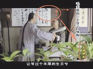 如果說《大清御史》是一部無厘頭作品,時空可以隨意倒轉(zhuǎn),古往今來的人和事都自由地在時空隧道里穿梭,那么,毛澤東的詩詞懸掛在清代人的居室里,是不妨事的,即使叫三皇五帝捧讀“毛詩”,也合乎觀眾的審美趣味?墒,《大清御史》偏偏是一部“嚴肅”的古裝電視劇,這就要求它必須嚴格地忠實于歷史”,不得馬虎塞責、粗制濫造到犯如此低級錯誤。