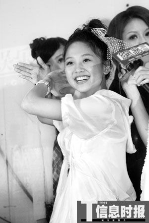 裝可愛是這群小女生的拿手本領(lǐng),應(yīng)主持人要求后,MeiMei率先在臉頰邊擺出OK的手勢(shì),再配合微嘟的嘴,十分可愛。走氣質(zhì)美女路線的Apple則使出“一陽指”功夫,緊貼嘴唇做出“噓”的動(dòng)作。大牙左右手并上,動(dòng)作幅度大,謀殺了不少菲林。搞怪的鬼鬼擺出像龜波氣功的姿勢(shì)還笑說:“這是翻蓋手機(jī)!倍蠓降乃粏柶鹑藲飧呤欠褚?yàn)楹秃谌恕巴印?其實(shí)只是房東跟房客的關(guān)系)時(shí),就立刻流露出羞澀的神態(tài)一個(gè)勁揮手:“哎呀,不要這么說,他是好哥哥,很照顧我而已!
