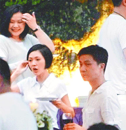 小S(中)慶生,老公Mike與賓客皆穿白色系服裝,后為徐媽媽。