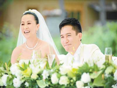 此時已經(jīng)沒有賓客上山,不丹當?shù)亻_始下雨。雖然突降的大雨使婚禮稍受影響,但相信絕對不影響偉玲心情。整場婚禮以白色為主要基調(diào),不僅蛋糕和背景都以白色為主,新人身穿的也是白色禮服。5層結(jié)婚蛋糕由曼谷東方文華酒店定做再空運不丹,蛋糕由名師Francois Laloue設計,以白色為主,糕邊布滿白糖花,售價為港幣1.3萬元。劉嘉玲一向愛美,在這一人生重大時刻當然要以最美麗形象出現(xiàn)——她選擇的婚紗款式為Vera Wang設計的白色抹胸款婚紗;而偉仔早前曾到香港的連卡佛,豪花數(shù)十萬掃衣飾,其中一件白色Tom Ford禮服則成為他的新郎禮服。