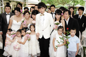 古巨基帶領10對新人一起走過紅毯時,也邀請了一位6歲的小女孩擔任自己的女伴。被浪漫婚禮氣氛打動的古巨基感慨地說:“一直很想結婚啊!很向往家的感覺,但可惜一直沒有遇到另一半的緣分!鄙磉呥@位6歲的小女伴,私底下透露說很喜歡古巨基哥哥,但是當古巨基在大家面前向她“求婚”:“我等你12年,你嫁給我好嗎?”小女孩卻害羞地多次推開古巨基的麥克風,斬釘截鐵地說:“不要!”令古巨基頗為尷尬。(記者柳治)