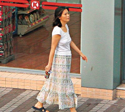 前日下午5時(shí)半左右,不施脂粉的藍(lán)潔瑛身穿白色緊身T恤、長裙,腳踏拖鞋,獨(dú)個(gè)兒離開愛澤樓寓所,前往附近的便利店購物,見她兩邊頭發(fā)斑白,樣子頗為憔悴。