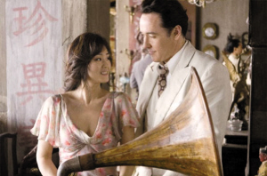 劇照中,發(fā)哥身穿風(fēng)衣,頭戴紳士帽, 活像28年前在《上海灘》中飾演的許文強(qiáng)。發(fā)哥無論身材與外貌,均與當(dāng)年無異。至于曾在張藝謀電影《搖啊搖!搖到外婆橋》中飾演歌女的鞏俐,這次也重施故伎,以濃濃的女人味誘惑兩位男主角。而在另一張劇照中,身穿低胸長裙的她,與因合作而傳緋聞的約翰·庫薩克深情對望。(王文)