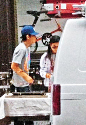 上月30日:女友Vincy低頭挑選小飾物,陳冠希體貼地在旁邊等候。