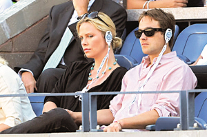 查理茲·塞隆與丈夫斯圖爾特·湯森德很投入地觀看費(fèi)德勒與穆雷的比賽。