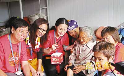 據(jù)香港文匯報(bào)報(bào)道,鐘欣桐、鄭希怡和李逸朗前日以英皇慈善基金成員身份,出席在四川擂鼓鎮(zhèn)舉行的“英皇擂鼓心連心關(guān)愛(ài)賀中秋”探訪(fǎng)活動(dòng)。身著紅色T恤、牛仔褲和靴子的阿嬌,看起來(lái)很精神。他們一行三人先到一位婆婆的家探訪(fǎng),和婆婆傾偈之余又為她按摩,原來(lái)婆婆的十名親人在早前的大地震死去,只剩下一個(gè)孫女,他們離開(kāi)婆婆的家時(shí),對(duì)方又送他們花生,當(dāng)被拒絕時(shí),婆婆實(shí)時(shí)落淚,阿嬌和鄭希怡就借機(jī)引開(kāi)婆婆的注意力,讓李逸朗把花生放回婆婆家中。