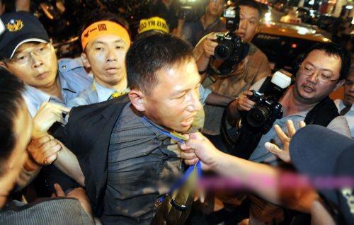 吳伯雄5日晚上在晶華酒店宴請陳云林,嗆聲民眾包圍飯店數(shù)度沖撞,走避不及的大陸媒體隨行人員遭綠營民眾圍堵拉扯。
